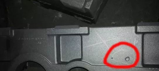 (2) poro de intrusión: por el tipo, núcleo, pintura, soporte del núcleo, poros de hierro frío generados por la invasión de la superficie de fundición y la formación de poros, en su mayoría en forma de pera u ovalado, de mayor tamaño, pared lisa, la superficie es más color de oxidación.