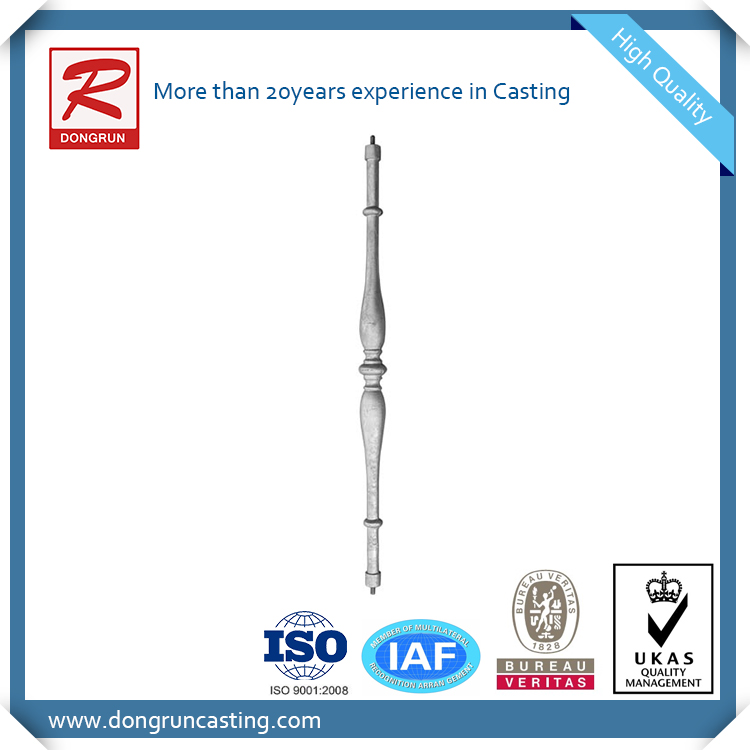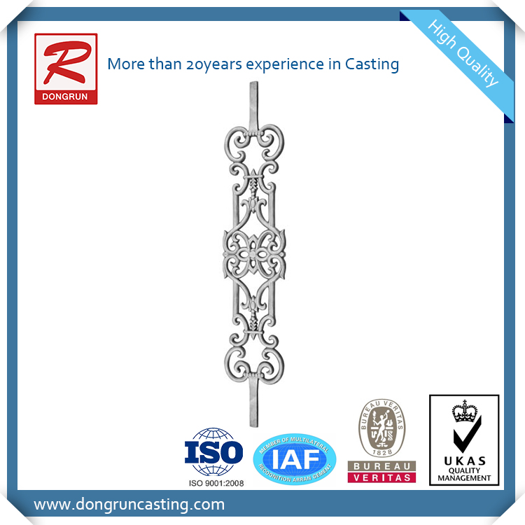 Las barras de estacas de aluminio fundido de alta calidad son una pieza de metal decorativa y divertida que agregará estilo a cualquier proyecto de sistema de barandas, puertas o cercas. Los diseños incluyen volutas en forma de remolino con un collar en el centro que se deslizaría sobre cualquier husillo simple. Estas fundiciones de piquetes de aluminio son del tamaño de su dibujo o muestra.